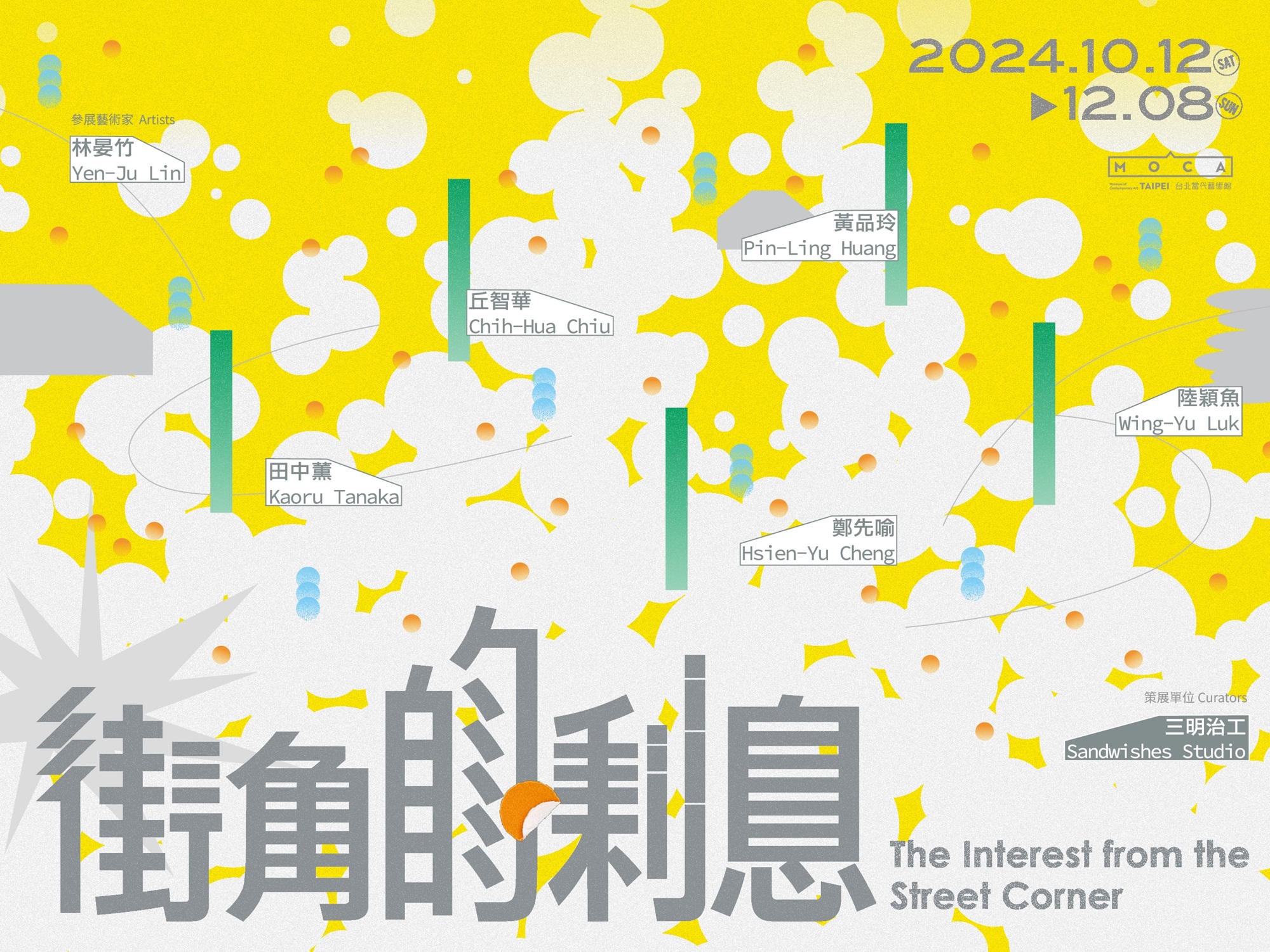本展邀請國內外共六位藝術家丘智華、田中薰、林晏竹、陸穎魚、黃品玲、鄭先喻,一起打造這項以自由與想像為目標的「投資組合」,所存入的每一份想像,將無可避免地回饋給您,不僅是無償與無價的「利息」,更是路過就能「賺取」的美好感受。