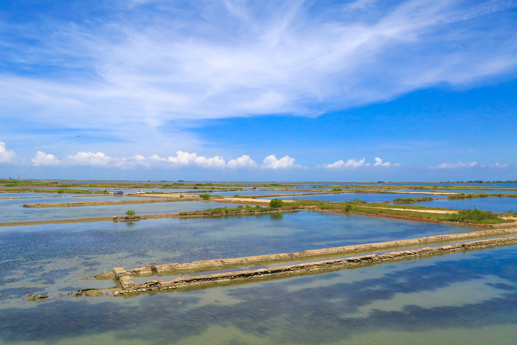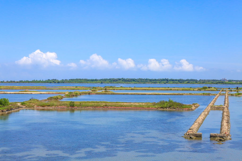 The fan-shaped salt field located in the south of Jiangjun Fishing Port and the north of Qinkunshen, with the salt workers' dormitory at its core, extends into the sea in a fan shape and is not only the most beautiful and unique salt field in Taiwan, but also the youngest. Looking down from the sky, admire the beauty of the fan-shaped salt field along the southwest coast of the Taiwan Strait.