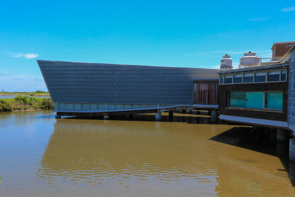 The Black-faced Spoonbill Ecological Exhibition Hall is a green building that not only saves energy and reduces carbon but also integrates into the natural environment, so that the habitat of the easily frightened birds will not be impacted because of the building in their foraging area. The stunning ecological exhibition hall can be used as the foreground for taking pictures of the sunset.
