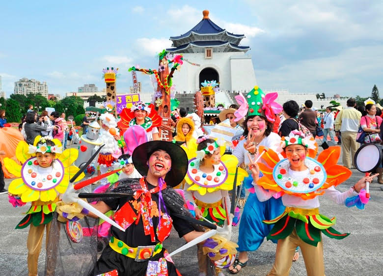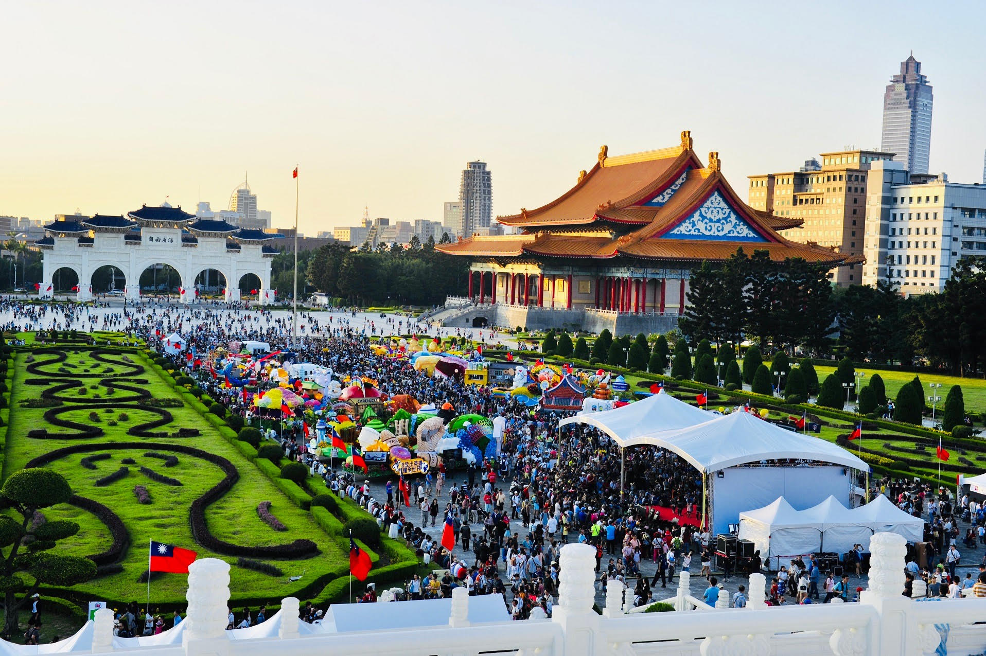 從正面牌樓穿越民主廣場後,到紀念堂臺階前的寬敞大道,稱作民主大道,斬假石石板鋪面寬40公尺、長380公尺,時常舉辦藝文表演和各類活動,吸引無數民眾觀賞。走在這條大道上,可以欣賞兩旁毛氈花壇色彩繽紛的花草,每年10月國慶時,兩旁插滿旗海,十分壯觀。
