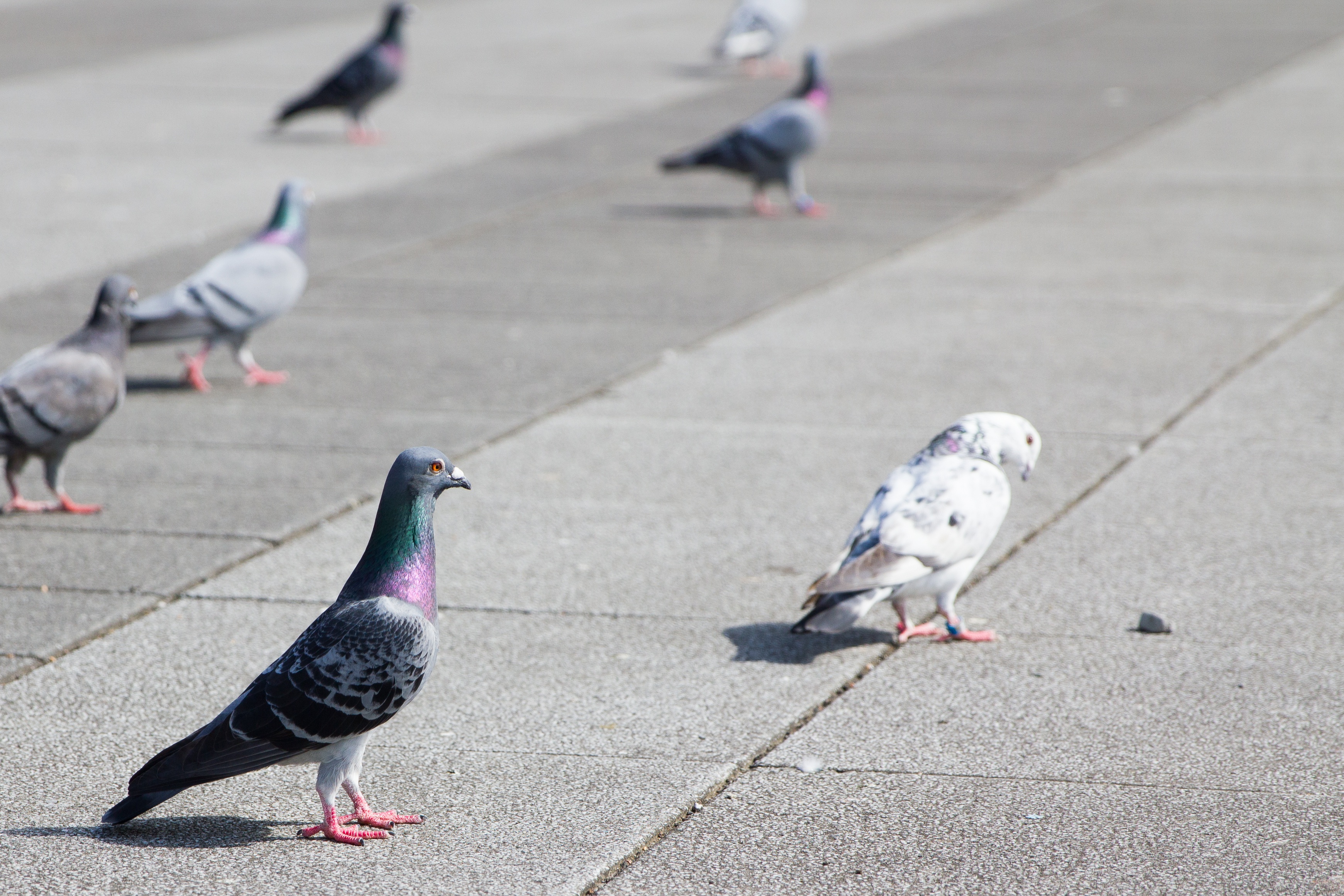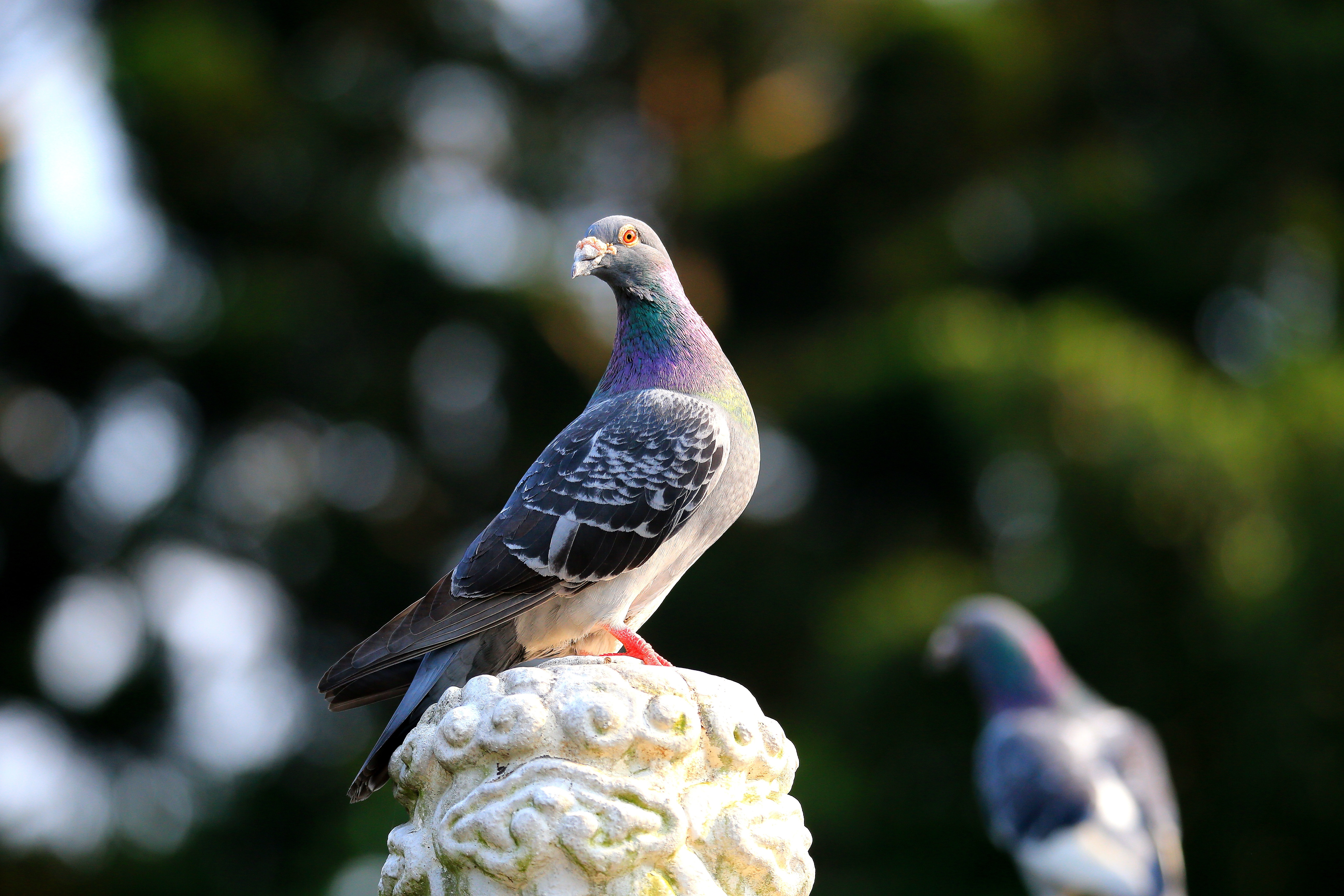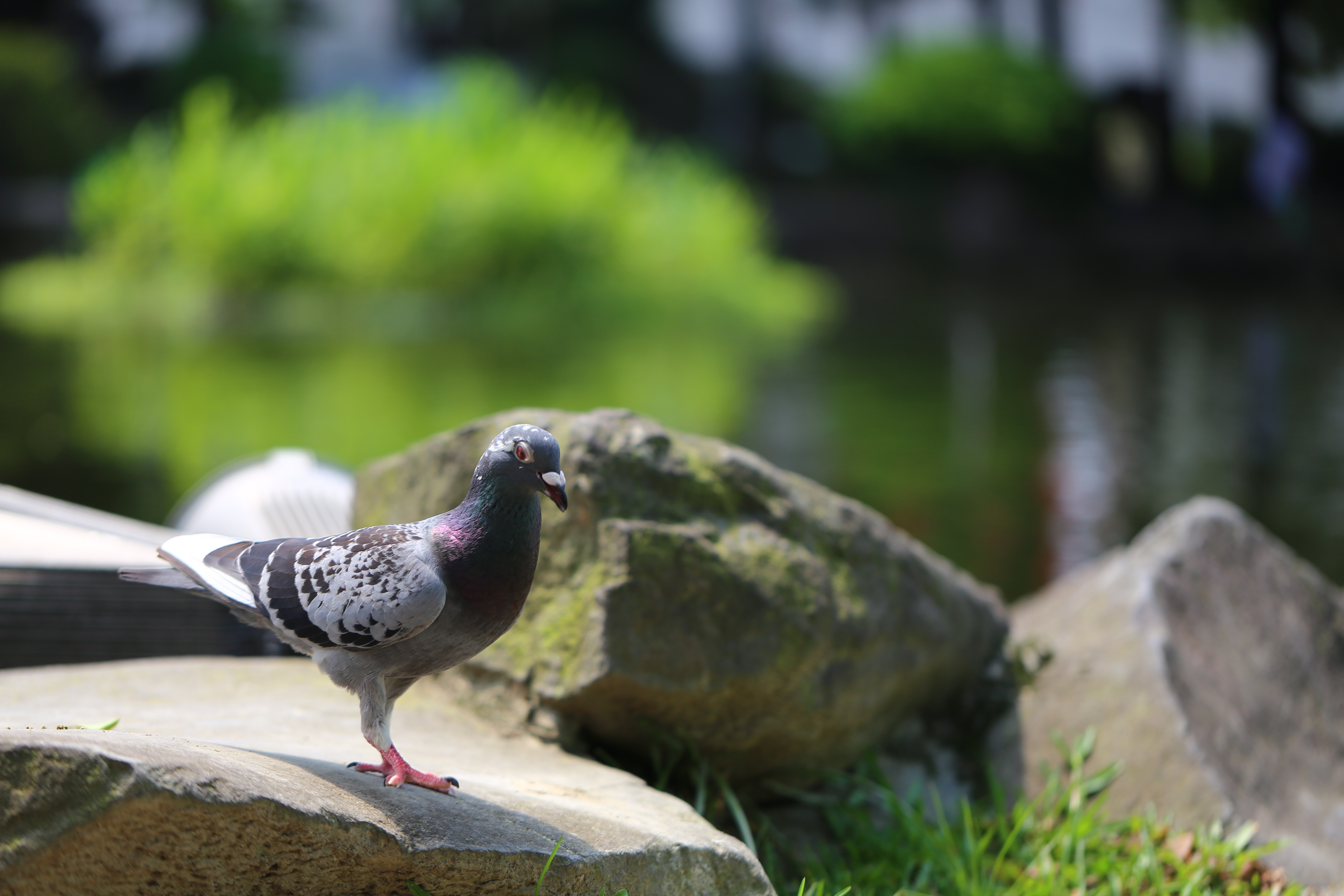 在園區廣場、魚池周邊及健身場,吸引了許多活動、覓食的鳥兒,包含族群數量最多的家鴿。 個性溫馴的家鴿是最為一般人熟知的鳥種,小小的頭、細細的嘴巴、短短的脖子,身體大多是灰色,頸部有青紫色光澤。家鴿行走時,頭頸隨著步伐前後移動,模樣可愛。家鴿會在廣場地面啄食遊客餵食的食物,若是在野外生活的家鴿,則以穀物、草籽、豆莢、樹芽及嫩草為食。