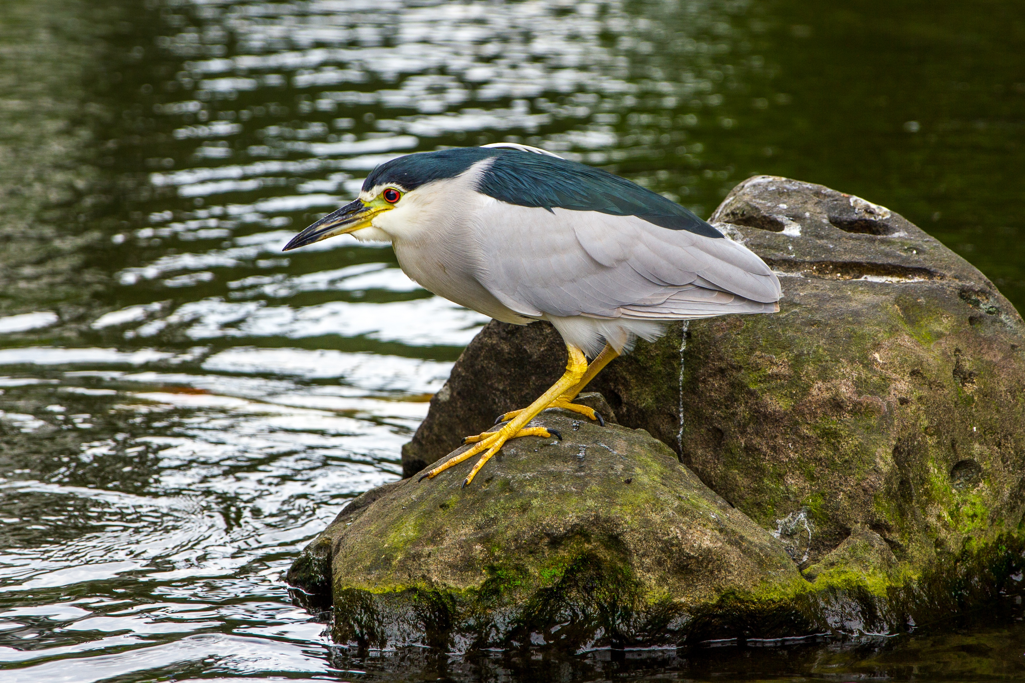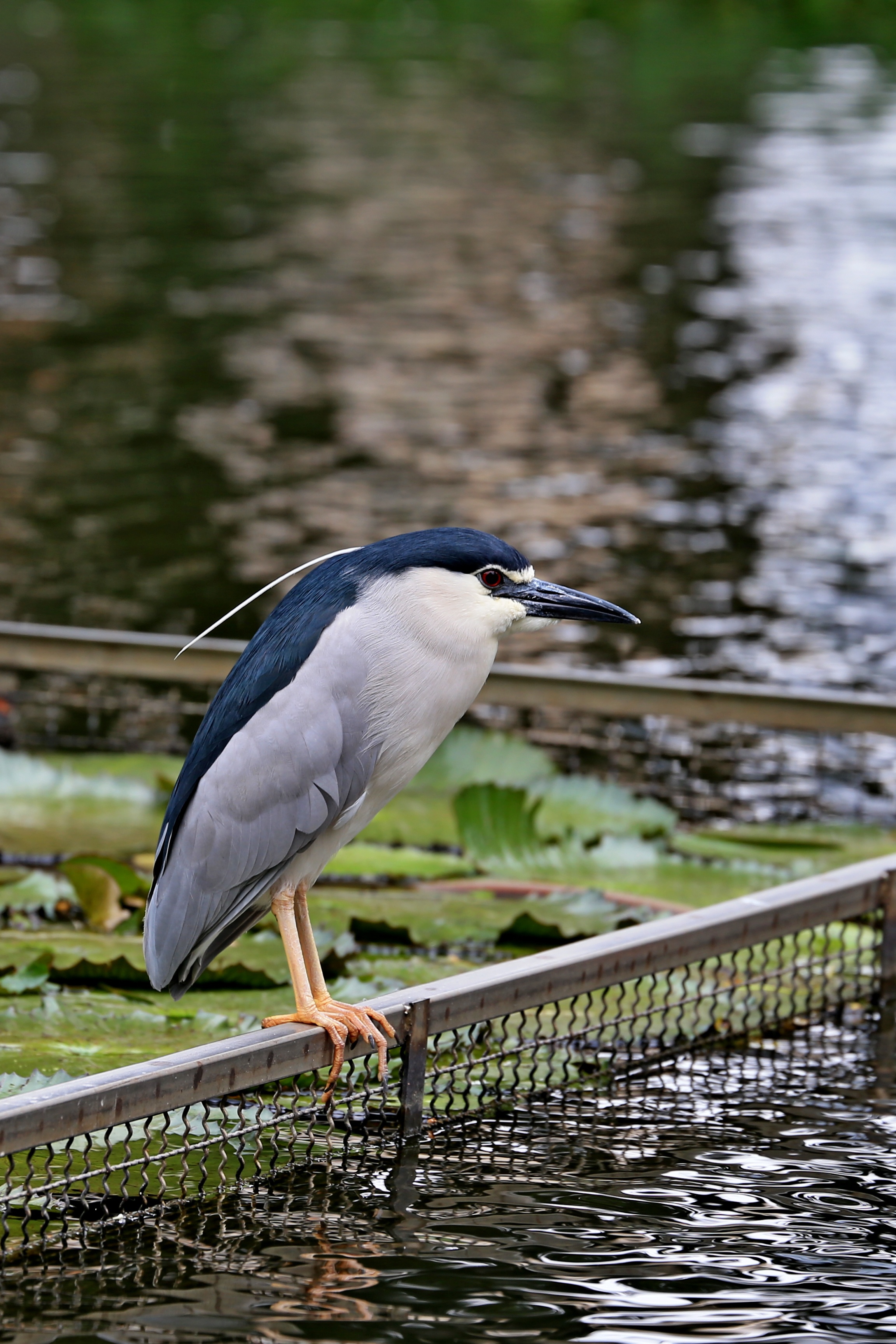 園區前方左右兩側的雲漢池及光華池吸引了數種水鳥在此覓食與生活,夜鷲就是其中之一。 夜鷺屬夜行性水鳥,又叫暗光鳥(臺語發音),常發出「呱-呱-呱」的粗啞鳴聲。主要出沒時間大多在清晨、黃昏以及夜晚,獵捕魚蝦、兩生類、昆蟲為主。夜鷺通常單獨獵食,繁殖期為了養育雛鳥,會在白天出來覓食。 夜鷺頭頂、上頸、肩部的羽毛呈黑色,頸側、雙翼及腰尾呈灰色,頭冠上有白色飾羽。