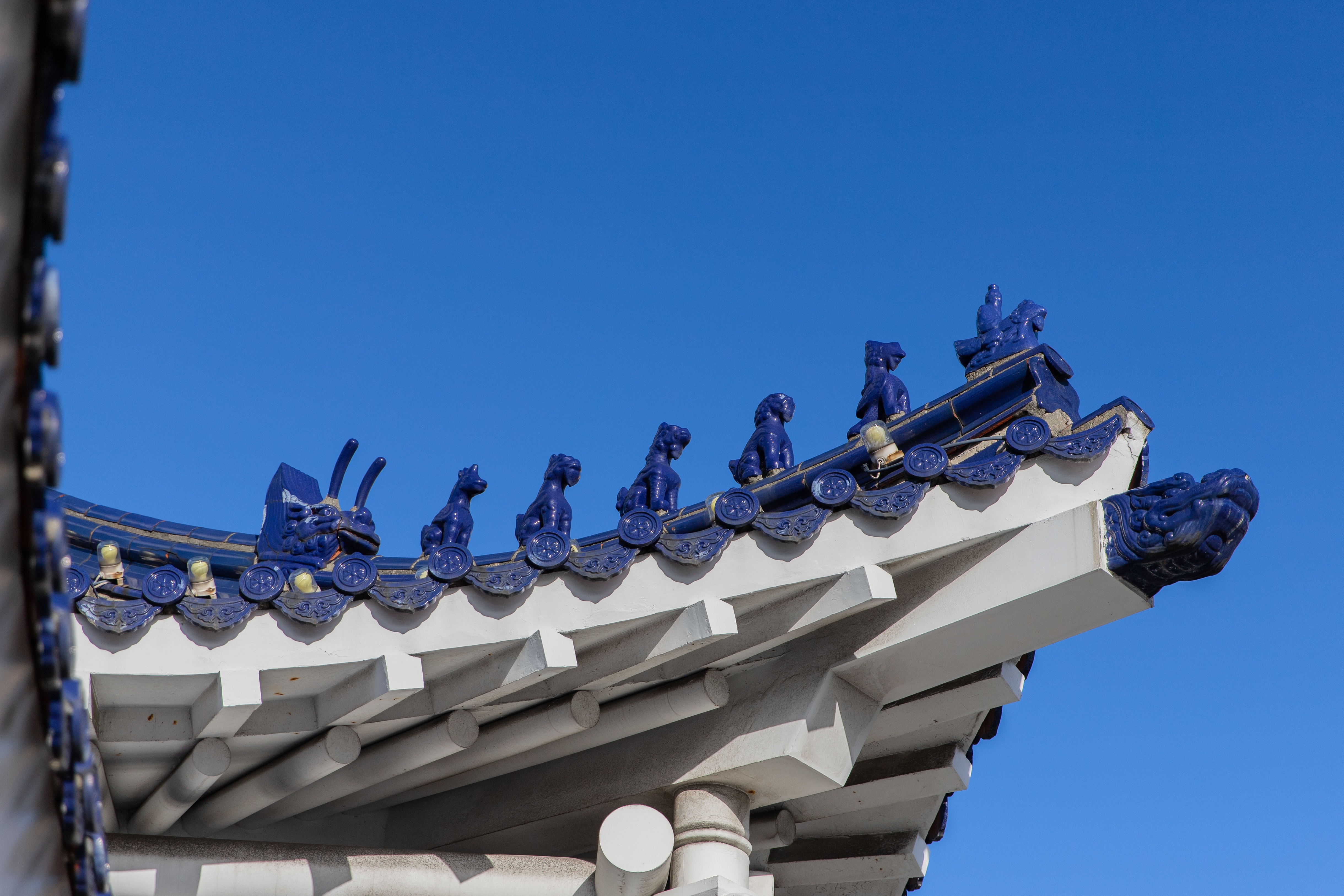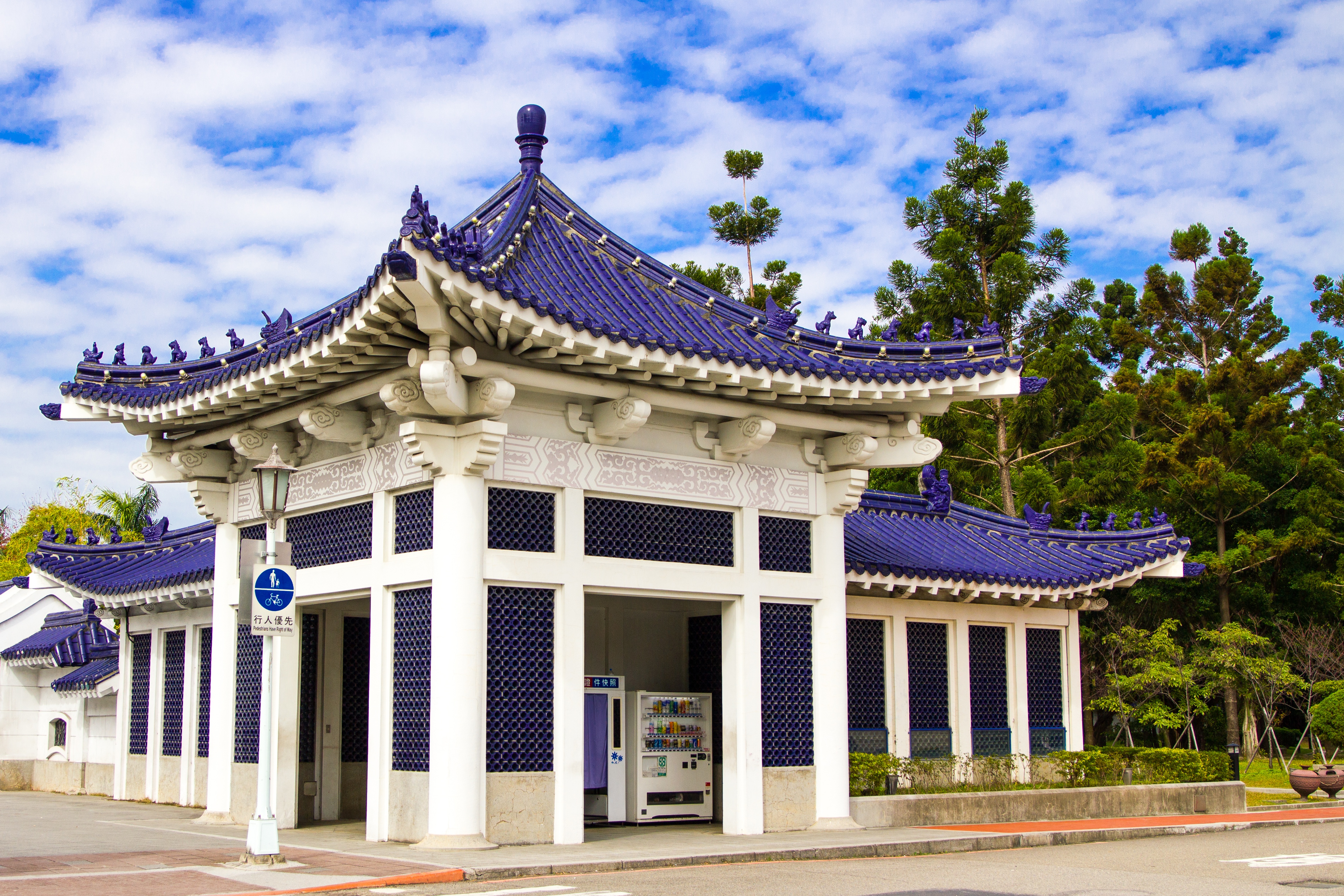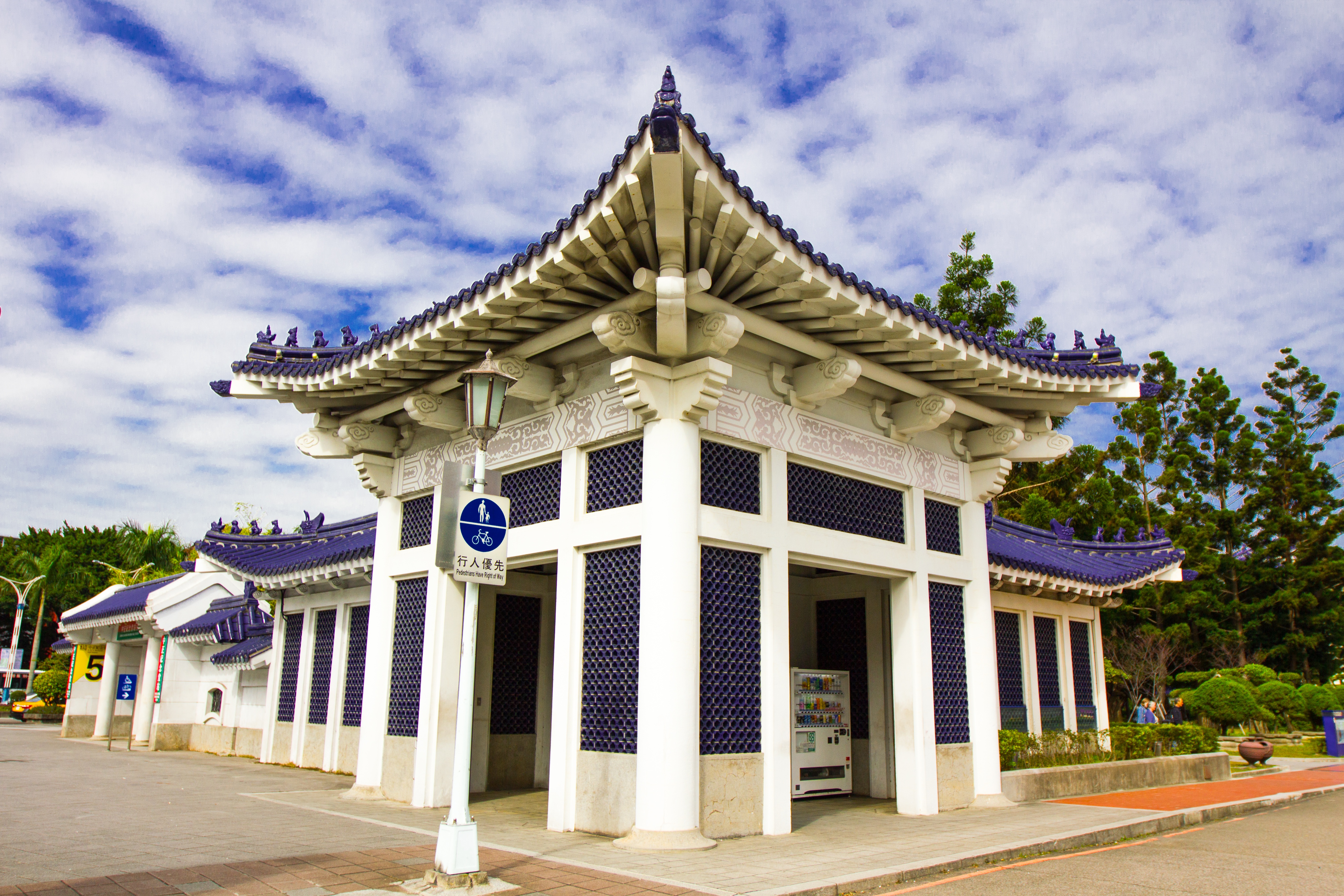 搭乘捷運到中正紀念堂,進、出站通常會經過座落在愛國東路的角亭。高度11.1公尺的角亭是中正紀念堂迴廊轉折的端點,共有4座,分布在愛國東路、杭州南路和信義路上。 角亭和主堂體、正側牌樓一樣,屋頂採用寶藍色琉璃瓦,上頭裝飾著不同數量的仙人走獸;不一樣之處是角亭不做斗栱,這種作法常見於建築規劃中較次要的空間。如果想要近距離觀察仙人騎鳳等6隻仙人走獸,角亭是相當適合的地方。