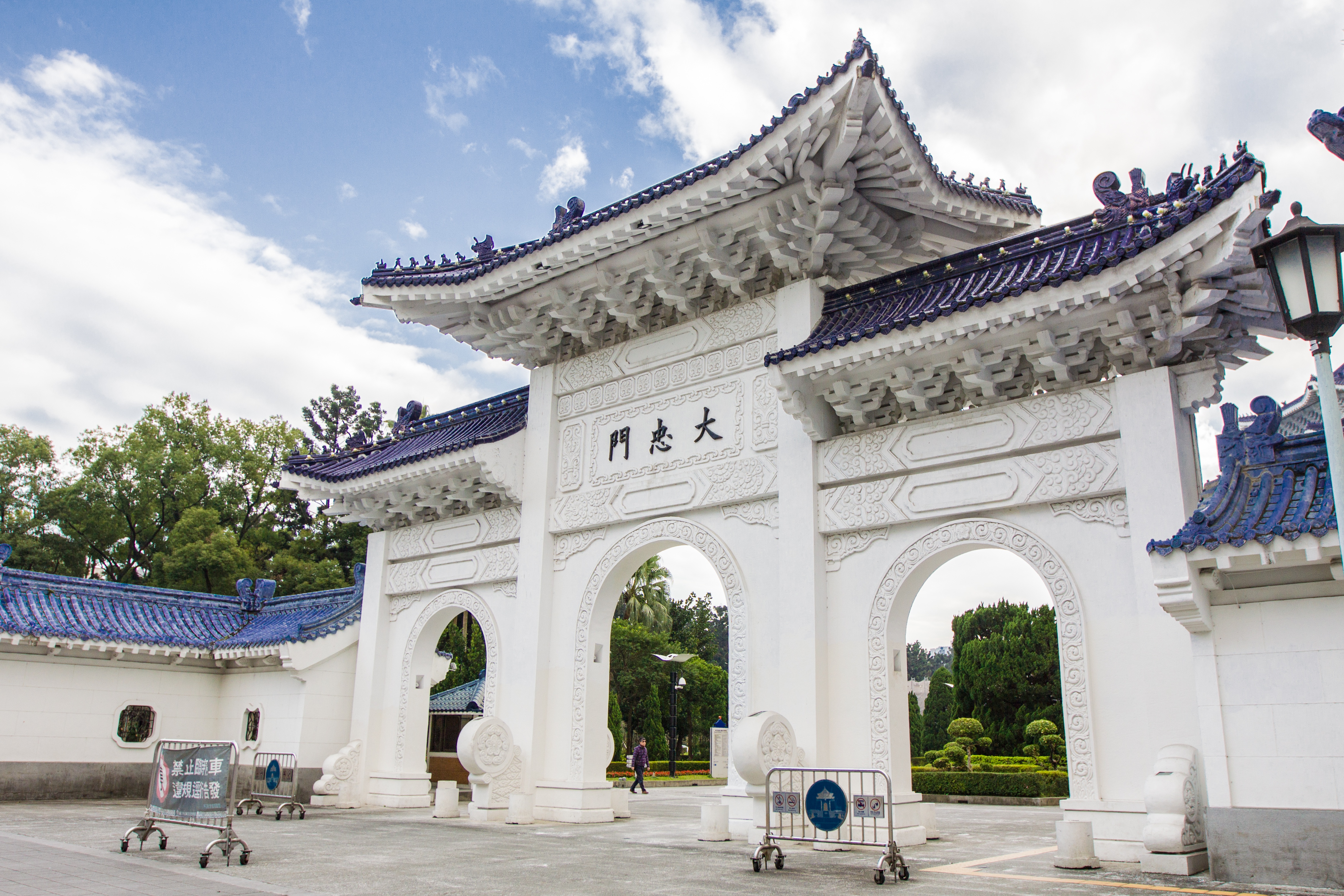 中正紀念堂外圍有3個主要入口,每一處都是以牌樓作為進出的地點,除了正面牌樓以外,另2座位於主堂體側面的牌樓分別是大忠門與大孝門,其命名取自「忠孝兩全」之意涵。 位於愛國東路上的大孝門,與信義路上的大忠門,皆為高13.8公尺、寬19.7公尺,採用3間4柱3樓式樣的建築,從形制上來看,等級略低於正面牌樓,但建材同樣採仿漢白玉的白色石材構築,並以多層斗栱搭建寶藍色琉璃瓦屋頂。