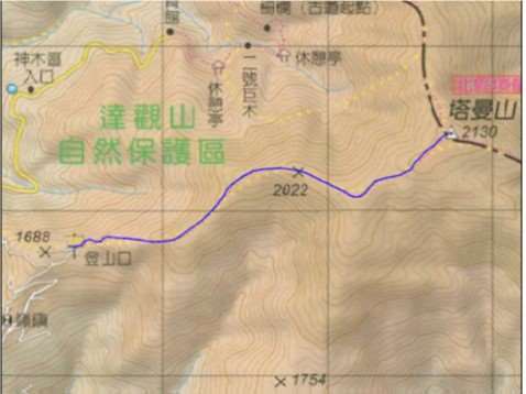 塔曼山為新北市第一高峰,海拔2130公尺。沿途蓊鬱茂密,樹形奇特,巨木參天,倒木亦多,可見證山林榮枯。步道多為盤根錯節的樹根及土石路面,山頂腹地不大且無展望。