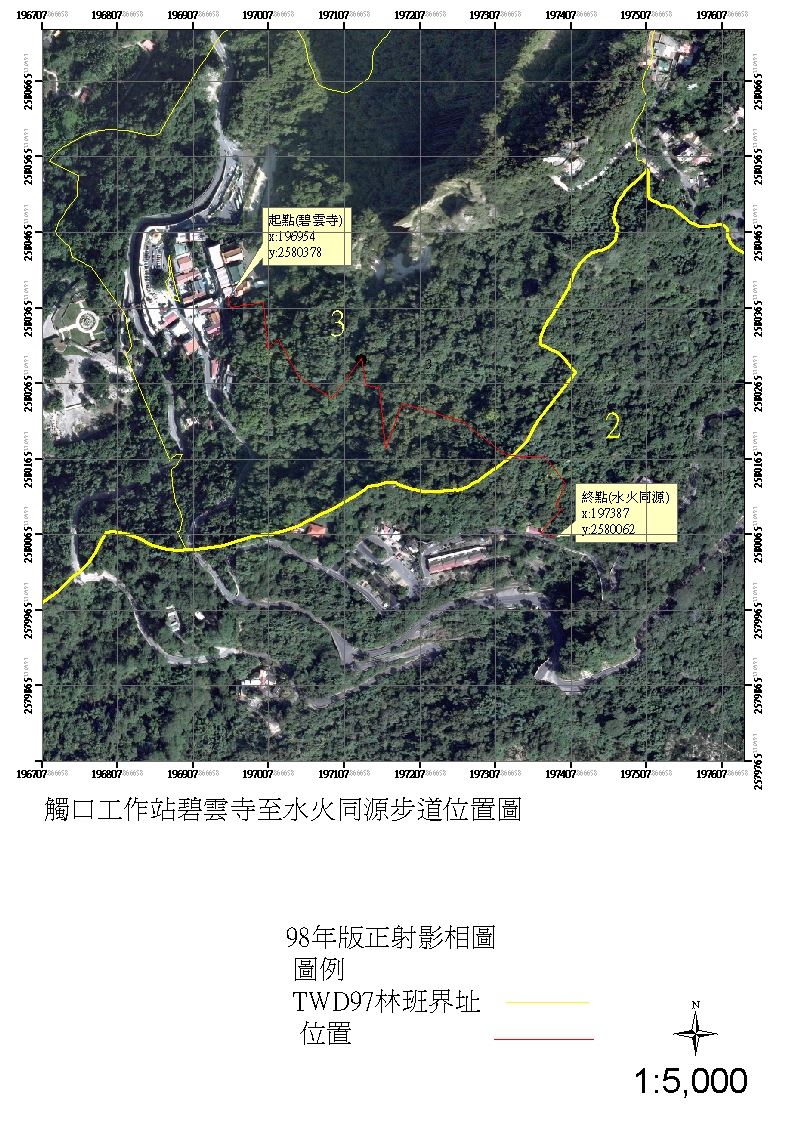 關仔嶺碧雲寺-水火同源登山步道自碧雲寺三寶殿出發,健行至「水火同源」,步道間不時可見蒼翠山巒之景,而水火同源更是臺南白河區著名景點之一。