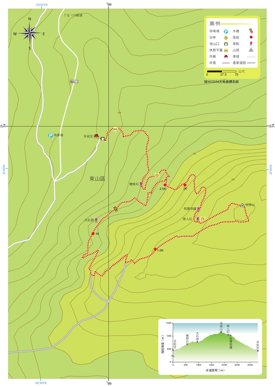 [開車前往]開車:南下/國道3號下白河交流道→轉172縣道→接175縣道,至13.8K處孚佑宮牌樓。北上/國道3號下六甲交流道轉→165縣道→接174縣道→接175縣道,至13.8K處孚佑宮牌樓。[大眾運輸]搭乘客運:由新營火車站步行3分鐘至新營客運新營站搭乘客運(黃7或黃13),於仙公廟站下車步行約4分鐘即抵達崁頭山步道登山口。