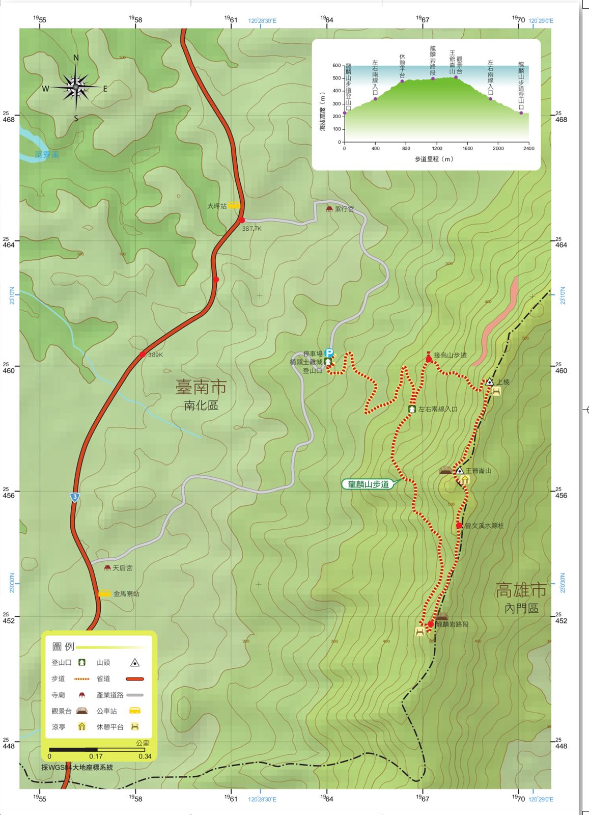 臺南龍麟山步道舊稱桶頭山步道,位於臺南市最東邊內烏山山脈上,是臺南市南化區與高雄市內門區的交界處,屬於烏山步道的一部份。龍麟山步道全程2.3公里,是一條環狀登山路線,步道延著山脊線蜿蜒,因山脊線上的巨石就像龍鱗般一片接著一片綿延展開,所以又稱為龍麟山步道。岩石構成龍麟般的瘦稜櫛比鱗次,宛如蟠龍攀附在山稜脊背上,登山健行充滿險趣與兼具挑戰性,這是龍麟山步道最大的特色。