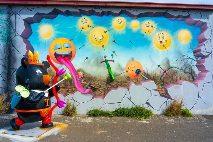 以萡子寮普天宮為中心,邀請藝術家來為這小漁村創作藝術,以詼諧方式重新詮釋東方中國神話,呼應當地廟宇的傳奇色彩,如四湖最知名的廟宇海清宮包公廟的包青天、盤古開天、牛郎與織女、哪吒大戰東海龍王、西遊記、嫦娥奔月等耳熟能詳的神話人物為彩繪主題,創作的總長度超過1公里,通過這些有趣的創作,讓萡子寮擁有更多活力。107年為了讓萡子寮更具特色,除了在創作藝術作品的概念中,加入更能凸顯在地色彩的當地特產元素,如漁獲及漁村生活等,更以觀光局吉祥物「喔熊組長」為創作主題,以4D立體雕塑和全台獨創「雙面畫」,打造「喔熊藝術村」,讓整個藝術村更活潑、趣味更濃厚,吸引國內外遊客目光成為拍照打卡熱門景點。