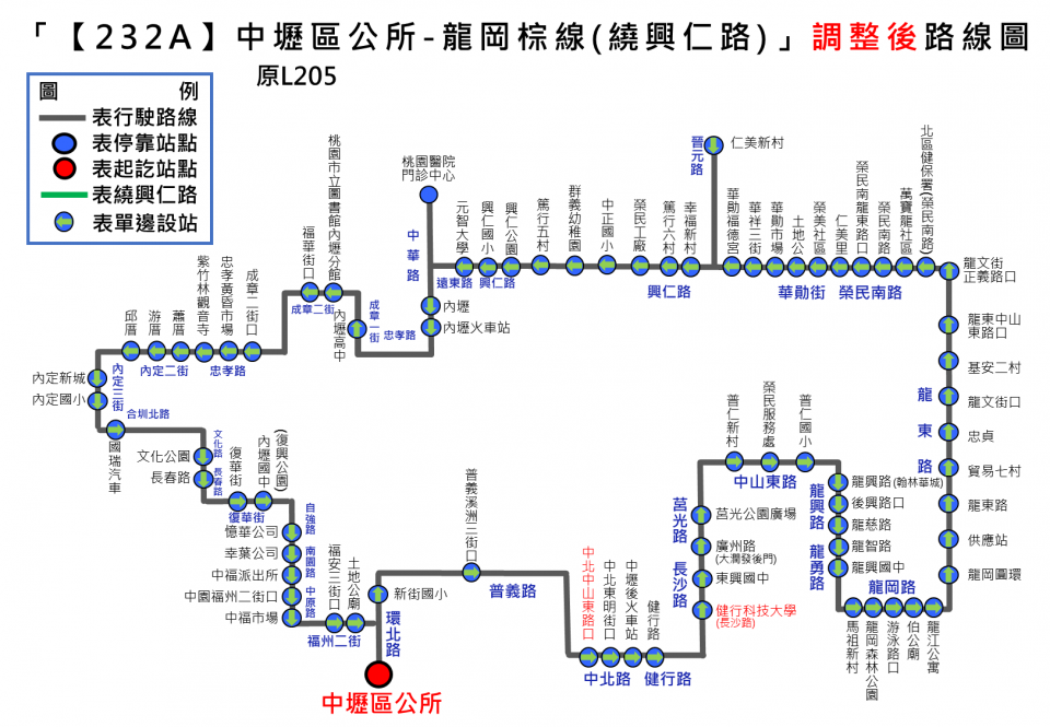 中壢區公所 - 龍岡棕線(繞興仁路)
