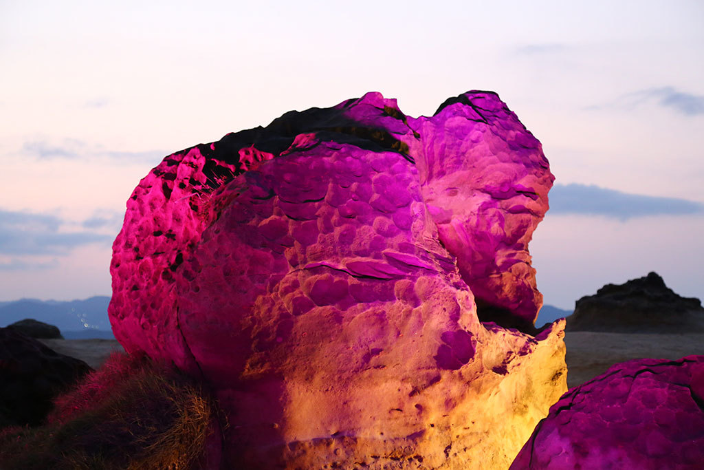 野柳地質公園開放夜間觀賞,形塑活動獨一無二的價值,本活動以「夜間岩石」為主軸, 配合海浪、漁火等元素為背景,呈現「夜間觀賞」之獨特性,配合蕈石群的個別蕈石特殊光影呈現,與光影主題以多色的燈光變化搭配音樂的呈現, 讓遊客有機會感受海天一色的夜景、感受夜晚海邊,晚風習來,石光爍爍,令人終身難忘的體驗。 夜訪女王 活動時間:4/19、4/21 - 4/26、4/28 18:30~21:00 門票票價:NT$ 200 女王音樂會 活動時間:4/27 19:00~21:00 門票票價:NT$ 1,000