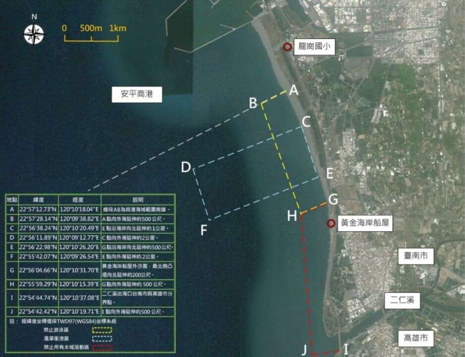 鯤鯓、喜樹近岸海域,活動開放與限制事項如下: