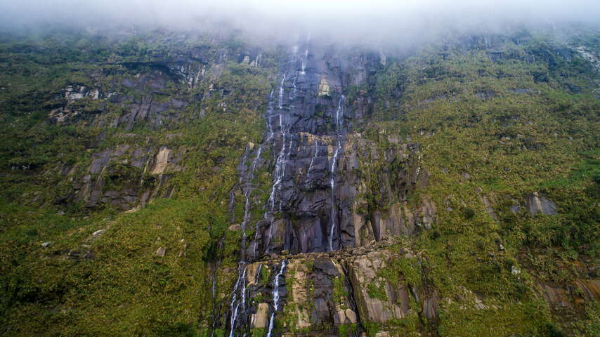 巍峨高聳的蛟龍瀑布又被喚作「台灣之瀧」,是一座因斷層形成的瀑布,位於豐山東南方的塔山尾稜岩壁上,其水源則是清水溪上游的支流蛟龍溪。在日治時期留存的手繪地圖中被標示為「大瀧」,在日語中為特大瀑布之意。蛟龍瀑布懸掛在高達1600公尺的懸崖絕壁上,落差846公尺,水量豐沛時,可見瀑布分作兩層俯衝而下,猶如白色巨龍,水勢磅礡,讓人體驗到大自然的威力,遠觀就像一幅山水畫作,可謂豪雨後的限定版美景,深獲遊客和攝影師的喜愛。當水量少時,則會看見大面積的山壁,流水則分作四層直落山谷,故建議想一窺蛟龍瀑布壯美之姿的旅人們在雨季時前往。