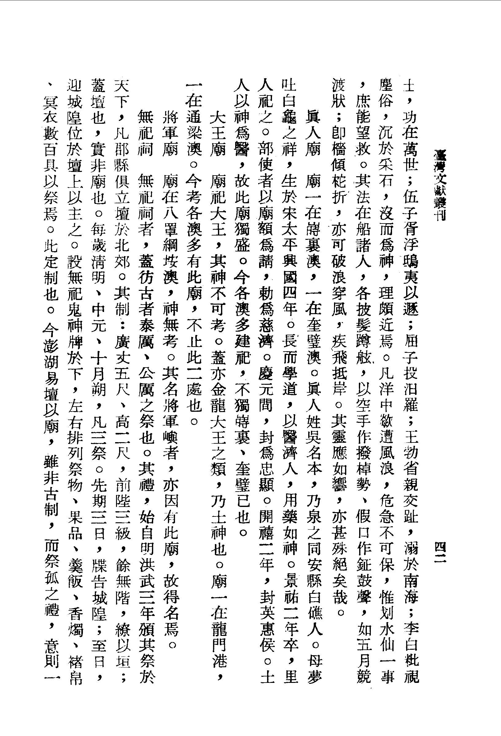 吳真人以醫濟人,用藥如神,鄉里建廟祭祀之 澎湖紀略卷之二 台灣文獻史料叢刊