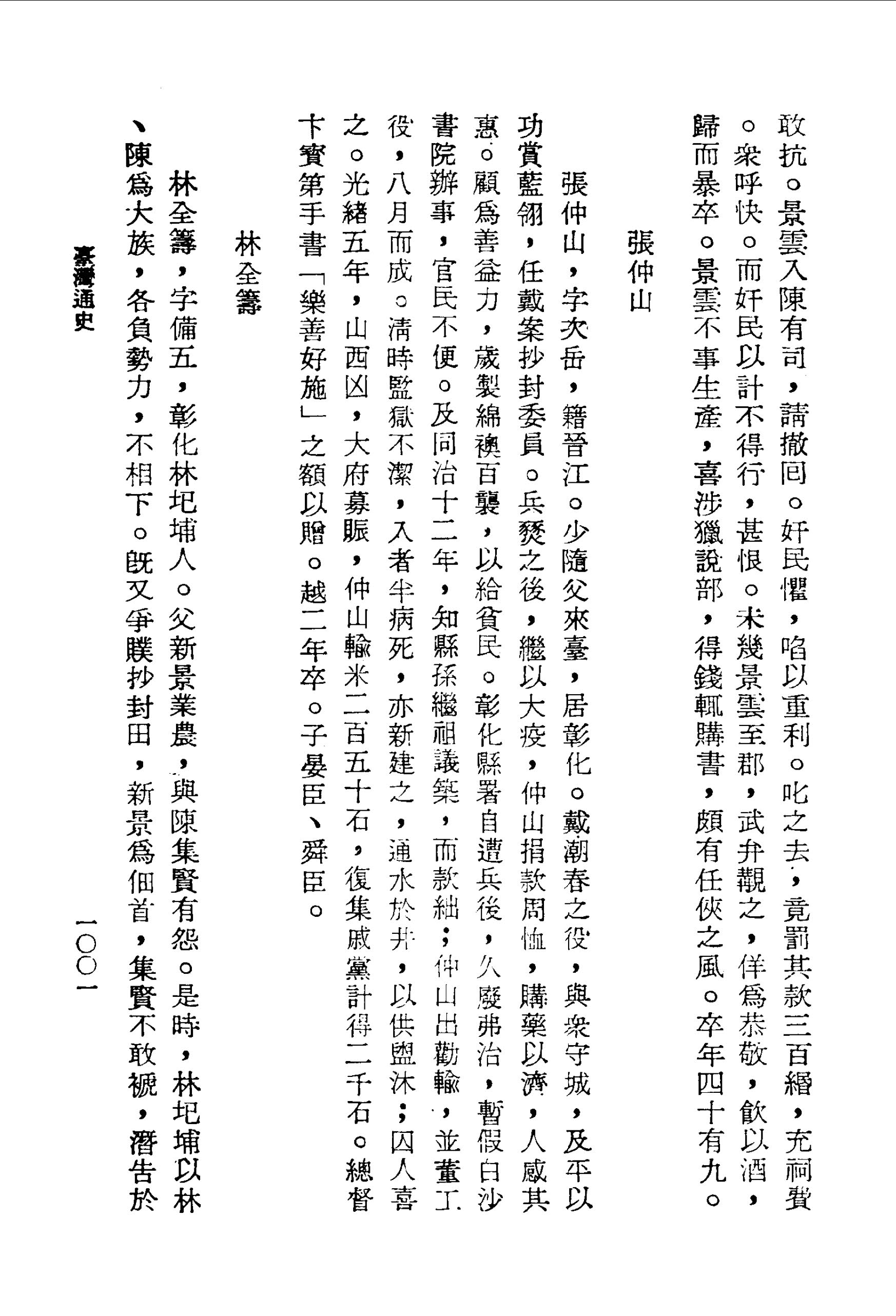 仲山出錢買藥來救濟百姓 臺灣通史卷三十五 台灣文獻史料叢刊